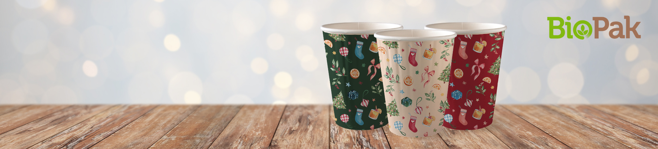 Each box contains a mix of all 3 festive designs. Available in 8oz and 12oz Double Wall options, lids available to purchase Separately, while stocks last.