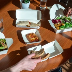 Designed and made in the UK by award-winning sustainable materials company, Notpla. This innovative takeaway packaging features a 100% natural seaweed-based coating that keeps food fresh and protected. Unlike traditional alternatives, it can compost at home in just six weeks, contributing to healthy soil - not pollution.