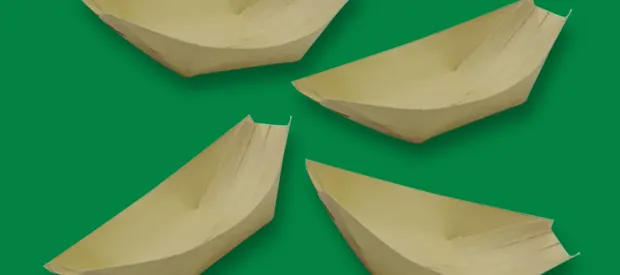 BioPak wooden trays UK are a plastic-free and eco-friendly disposable solution for your takeaways. Certified food-safe, our wooden trays wholesale are suitable for cold items as well as hot foods up to 100°C. We guarantee our boat trays for food are ideal for serving canapés, sushi, dumplings, wraps and more in style. Choose our fully compostable wooden trays today!